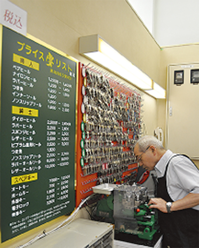 イトーヨーカドー港町店内という立地の良さもさることながら、開店16年の実績で熟練の腕をふるう佐々木店長の誠実な仕事ぶりが人気だ。「他店では断られたという複雑な鍵でも、まずはお持ちください」と同店長。車のイモビライザーキーも取り扱う。