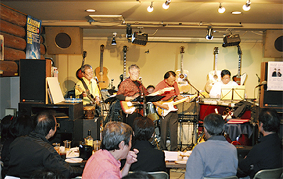 管理職などで活躍するビジネスマンたちがネクタイを外し、自らステージで演奏したり、ライブ鑑賞を楽しむ「土里囲夢Night」が10月24日、南町のライブハウス土里囲夢(どりーむ)で開催された。