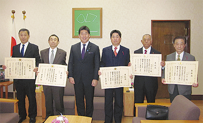 2014年度食品衛生事業功労者厚生労働大臣表彰を受賞した市内の衛生功労者と衛生優良施設の代表者5人が10月27日、福田紀彦市長を表敬訪問し、受賞の報告を行った。
