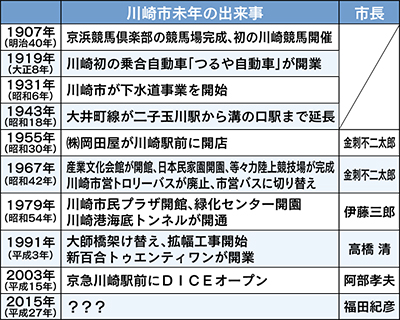 昨年末の衆院選の興奮冷めやらぬうち、4月には統一地方選を迎える15年未年。過去の未年には、川崎でどんなことが起きていたのか。出来事を振り返る。