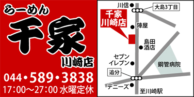 創業23年、ラーメン激戦区の横浜で生まれ育った家系ラーメン店の老舗「千家」。このほど大島に構える川崎店がオープン1周年を迎えた。「千家のラーメンを愛してくださる皆様のおかげです」と話すのは、千家グループ総料理長の酒井知明さん。川崎店は酒井さん自らが腕をふるう貴重な店舗で、『これぞ横浜家系』の味を求める通な客の舌をうならせている。