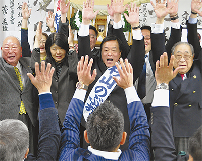 6選を果たした嶋崎氏は町内会単位のミニ集会を中心に選挙運動を展開。納税者の負担を考えた福祉政策の在り方などを訴えた。「初心を忘れず暮らしの中に役立つ姿勢を目指す」と支援者にあいさつした。