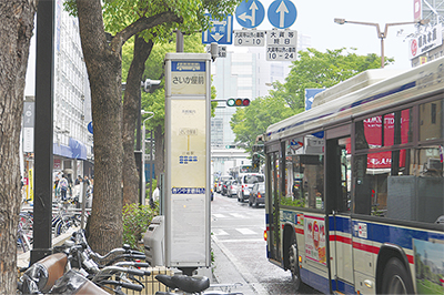 新川通りにある「さいか屋前」は10系統のバスが通る。同社によると、百貨店がオープンした当初から停留所名として使用してきたという。「さいか屋は川崎のランドマーク。バス停の名前も地域住民に浸透している。簡単に変更するわけにはいかない」というのが継続の第一の理由だ。