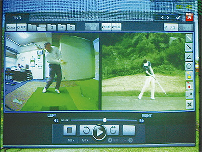 また、GDRにはスイング分析機能がついており、打席でのショットは映像で記録。プロのショットの映像と左右に並べ、スロー再生しスイングやフォームを比較することもできるので、「何が原因でうまく打てないのか」、「どうすればもっと良くなるのか」といった疑問を解消しながら、フォームを改善していける画期的なシステムだ。1打1打をデータに残し、クラブごとの詳細なデータも把握することができる点も魅力。「どのクラブでどれくらい飛ばすことが出来るか、自分で把握できているか否かは本番での結果に大きく左右します。多彩な機能を利用して、ぐんぐん腕をあげていきましょう」と、増田敏雄社長。
