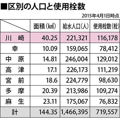 川崎市が2010年度から6年間継続してきた、水道料金軽減の特例措置が3月末で終了する。行財政改革の成果による減額の措置がなくなり、4月から1カ月あたり50円値上がりする。今回見込まれる年額約4億5千万円の収益増で、市は老朽化した管路の更新、耐震化などを引き続き進めていく予定だ。