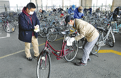 不要になった放置自転車をベトナムの子どもたちに寄贈しようと市民団体「日本ベトナム友好協会川崎支部」(宮原春夫支部長)は今月5日、塩浜にある自転車保管所で解体作業などを行った。