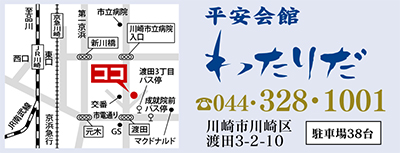 川崎市内に8カ所の斎場を展開し、長年に渡って地域密着の心のこもった「ご葬儀」を届けてきたセレモニアグループの「平安会館わたりだ」では、4月24日(日)、無料セミナー「知ってて安心葬儀の基本、使って安心”互助会”」を開く。時間は午前10時から正午まで。入退場自由。要予約30名。