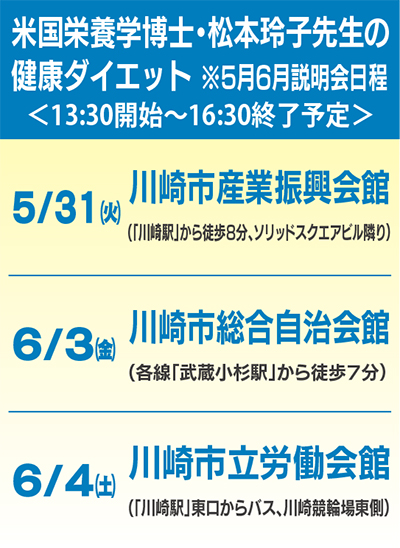 全国各地で50〜70代の女性から評判を呼んでいる「米国栄養学博士・松本玲子先生の健康ダイエット」。