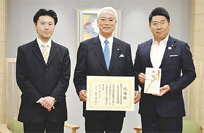 4月に発生した熊本地震の復興支援に役立ててもらおうと、中国料理「煌蘭」がチャリティーイベントの売り上げ全額の18万2607円を川崎市に寄付した。今月5日には川崎市役所で贈呈式が行われ、同店を運営する(株)コミュニティフーズの畔蒜(あびる)俊光代表取締役社長と石黒修川崎店店長が福田紀彦市長に目録を手渡し、市長から感謝状を受け取った。