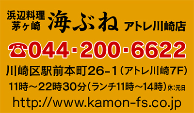 港直送の鮮魚を惜しみなく使った漁師料理で人気の「茅ヶ崎海ぶね」(アトレ川崎7F)がタウンニュース読者限定となる真夏の割引企画を本日8/19(金)から9/8(木)まで実施する。