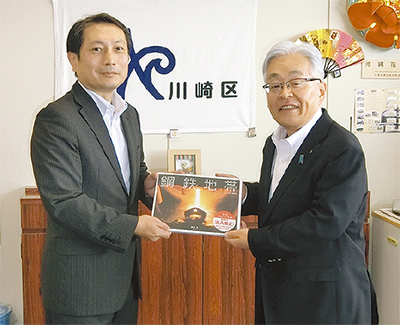 JFEスチール東日本製鉄所(京浜地区)は先月29日、写真集『鋼鉄地帯』50冊を川崎区役所などに寄贈した。阿久根晋総務部長が土方慎也区長のもとを訪れ、写真集を手渡した。川崎区からは感謝状が贈られた。