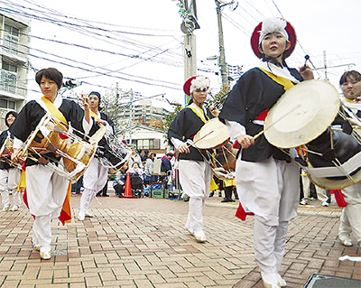 桜本地区で秋の恒例になっている韓国・朝鮮の農楽「プンムルノリ」のパレードがあさって20日(日)に行われる。隊列は民族衣装を身にまとい、チン、ケンガリ、プク、チャンゴと呼ばれる伝統楽器を叩きながら桜本商店街を練り歩く。