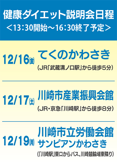 今回の無料説明会は、各会場5〜6人迄の少人数制で実施のため要電話予約。
