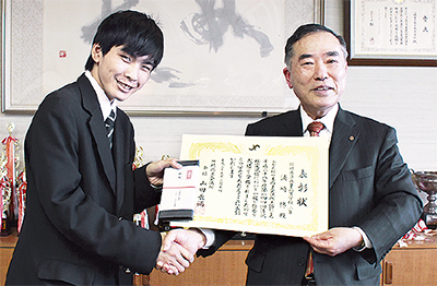 川崎商工会議所(山田長満会頭)は先月7日、日商簿記1級に合格した市立商業高3年の浦崎柊(しゅう)さん=人物風土記で紹介=に表彰状を贈った。