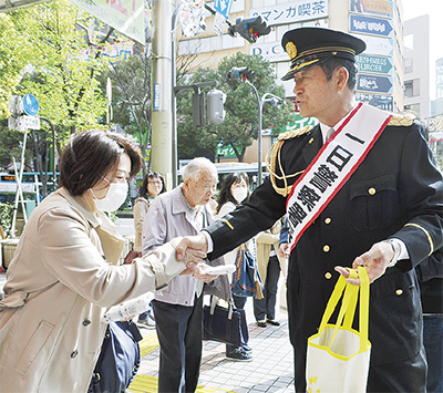 中畑さんや花家署長、川崎交通安全協会のメンバーらは、チネチッタ通りや銀柳街で「春の全国交通安全実施中」と書かれた横断幕を持ってパレード。その後、車のライトなどで光る反射シールや、ドライバーや保護者らに交通ルールの順守やシートベルトの着用を訴えるチラシなどが入った啓発物を配り、交通事故防止を呼びかけた。