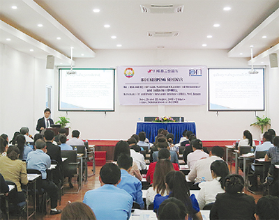 川崎商工会議所(山田長満会頭)は8月21日、22日、東南アジアのラオス商工会議所(オデット・スヴァンナヴォン会頭)、財務省財務総合政策研究所の3者共催で、ラオス現地で簿記セミナーを開いた。