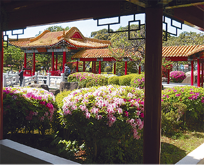 瀋秀園は1987年、川崎市と中国・瀋陽市の友好都市締結5周年を記念して造られた中国式自然山水庭園。名称には「瀋陽のすばらしい景色を集めた庭園」との意味が込められている。