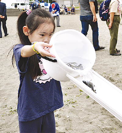 東公園では、稚魚の放流や海のスポーツ体験が行われるほか、無料でさんまの炭火焼き(7日)、牛肉の炭火焼き(8日)が味わえる。無くなり次第終了。