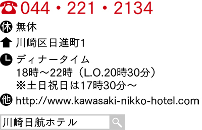 窓の外に広がる川崎の街並みを見ながらのディナーブッフェ。豪華なグルメが揃う中、フェア毎に変わる実演メニューが人気。11月30日(木)まで秋の味覚フェアを開催中!12月1日(金)からは人気の北海道フェアを予定。忘年会時期にぴったりなお得プランも。