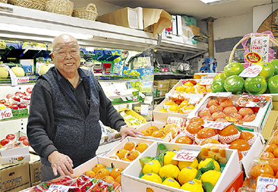 東京都青果物商業協同組合青年部八百屋塾講師を務める橋本社長。その視点から「(ミカン類とオレンジ類を掛け合わせた)『紅まどんな』がお勧めだね」と語った。「ゼリーのような食感で糖度があり、喜ばれる」とも。また、酸のキレが良いデコポン『大将季』も味は安定している」という。同社長によるとお歳暮は「一年の感謝の気持ちを込め、来年の繁栄を願うためにある」と強調。「こういう時代だからこそ、大事にしてもらいたい」