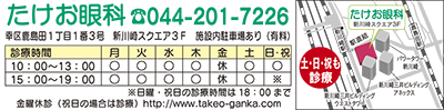 土日祝も診療 たけお眼科(新川崎スクエア3F)