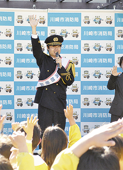 春の火災予防運動(3月1日から7日)で、幸消防署と幸消防団は1日、JR川崎駅商業施設アトレ川崎5階スカイコートで幸防災フェアを開催した。