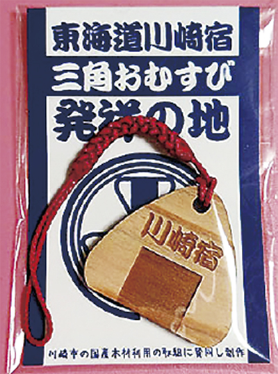 実行委員会はフェイスブックページを開設し、イベントと三角おむすびレシピコンテストをPRしている。投稿をシェアし、当日会場に足を運んだ人に「三角おむすび発祥の地ストラップ(木製)」=写真=をプレゼントする特典もある。https://www.facebook.com/kawasakijuku2023/