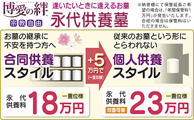 「引き継ぐ人がいなくても安心なお墓がいい」、「低予算でもしっかりとした供養をしたい」―。「博愛の絆」では、大切なお骨は壺のまま一定期間預けた後、さらしの袋に入れ、丁寧に埋葬する。希望により、光が差し込む明るい納骨棚で安置も可能(年間保管料1万円)だ。複数年の延長も可。お骨を手放す感じの「後ろめたさ」を感じさせないことも人気の秘訣。