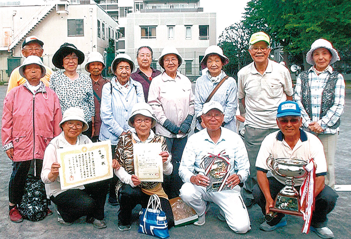 市大会には主将の山口良春さん、鈴木修さん、鈴木まさ子さん、伊東スエさんの4人が出場。予選を3戦全勝で勝ち上がり、8チームによる決勝トーナメント戦を制して、初優勝を決めた。
