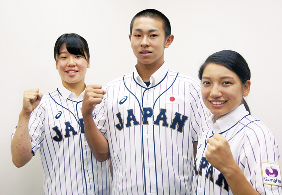 女子野球ワールドカップ日本代表に選ばれた田中美羽選手(20・川崎区)、清水美佑選手(20・高津区)と、U―15ワールドカップ日本代表に選ばれた金井慎之介選手(15・幸区)が、19日、福田紀彦市長を表敬訪問した。