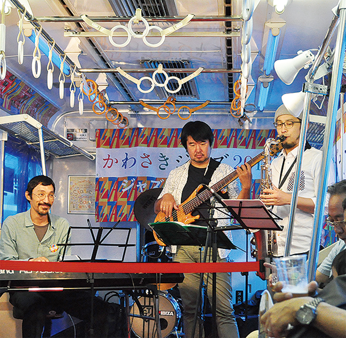 「かわさきジャズ2018」とのコラボもあり、ライブハウスと化した車両の客はジャズのリズムに体を揺らし、思い思いに音楽を楽しんでいた。