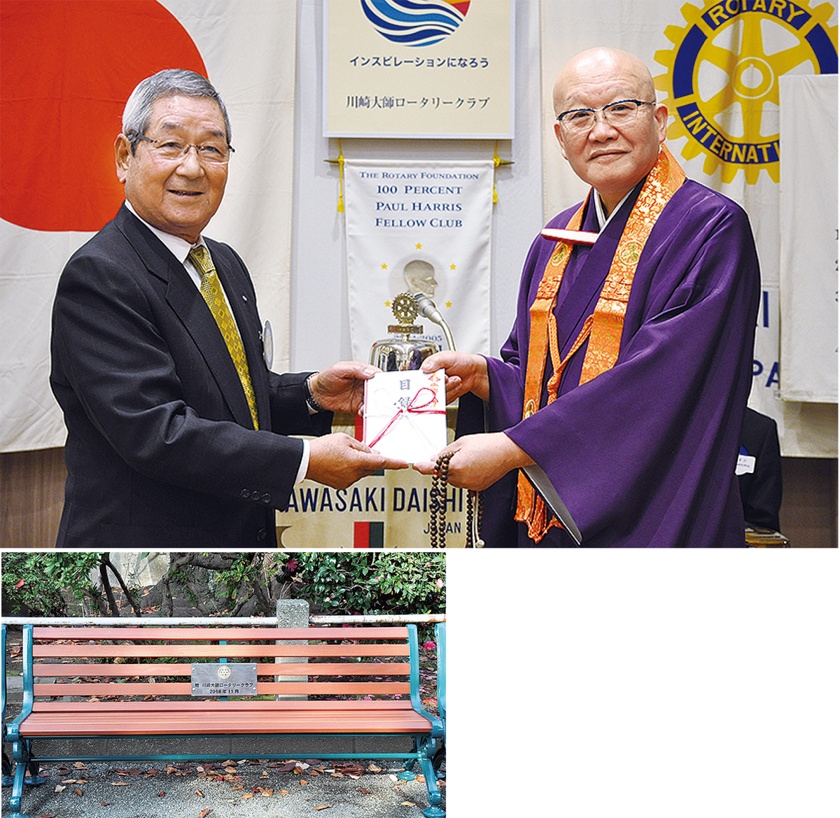 奉仕団体「川崎大師ロータリークラブ」(=RC・遠藤悦弘会長)は先月28日、川崎大師平間寺(川崎区大師町)に参拝者用のベンチ5基を寄贈した。ベンチは同寺境内の五重塔前に設置された。