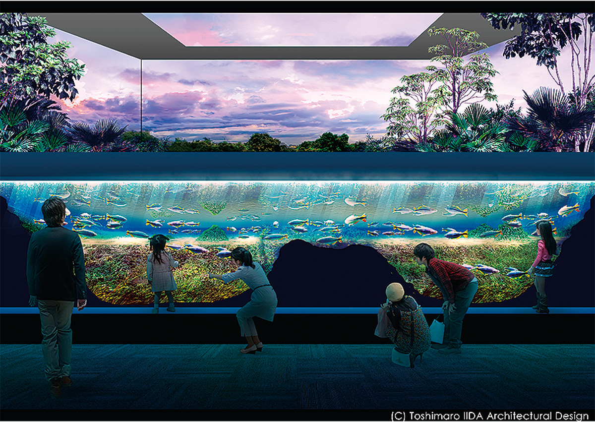霧や滝といった自然環境を様々な手法で表現し、臨場感あふれる演出を行う。アクアパーク品川、八景島シーパラダイス、新江ノ島水族館といった近隣の水族館があるなかで、人工知能を用いた新しい展示手法を開発し、他との差別化をはかり、年間100万人以上の来館者数を見込む。担当者によれば「小学生などの体験教室の場になれれば」と地域との連携も視野に入れる。