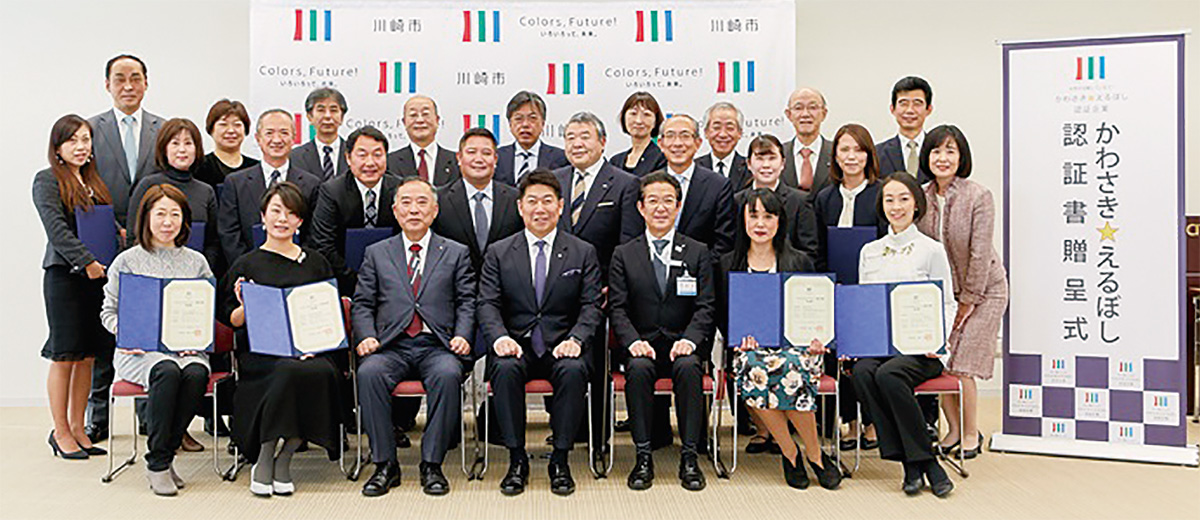 川崎市は女性専用の更衣室やトイレの設置、有給休暇の取得、男性の育児休業取得など、女性の活躍やワークライフバランス推進のため、働きやすい職場づくりに取り組む中小企業を対象に「かわさき☆えるぼし」認証制度を設け、このほど24社を認証企業として決定した。
