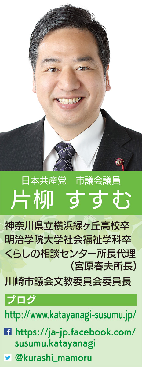 大型開発優先の今の市政を改め、労働会館の改修や特養ホーム・認可保育園の増設など市民のくらしを支える市政に転換するため力を尽くします。