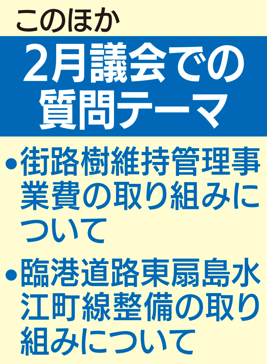 浸水対策の重点化地区である京町・渡田地区、川崎駅東口周辺地区、大島地区、観音川地区における来年度の取り組みについて質問しました。