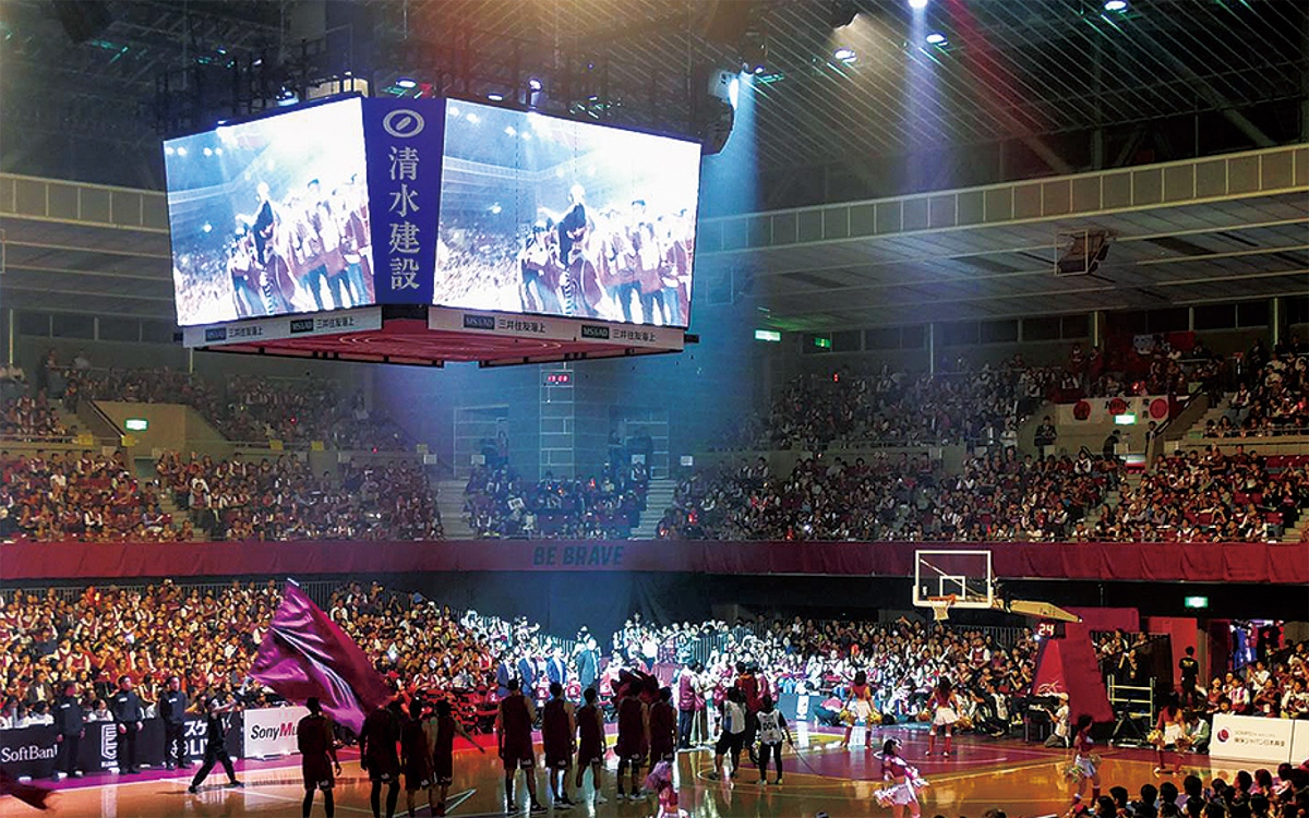現在、試合開催日の「とどろきアリーナ」ではアリーナ内にNBAなどで設置される「センターハングビジョン」を設置し、演出効果を高めるほか、試合観戦前に来場者が楽しめる空間「サンダーススクエア」を開設し、開場を盛り上げています。