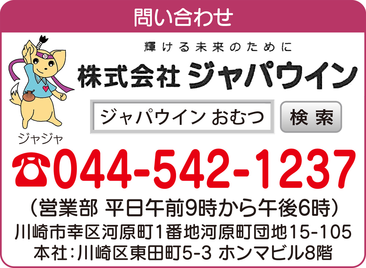 川崎区、幸区、中原区及び横浜市鶴見区で介護サービスを提供している(株)ジャパウインは昨年から「川崎市ねたきり高齢者等紙おむつ及び日常生活用具給付事業」に新規参入した。
