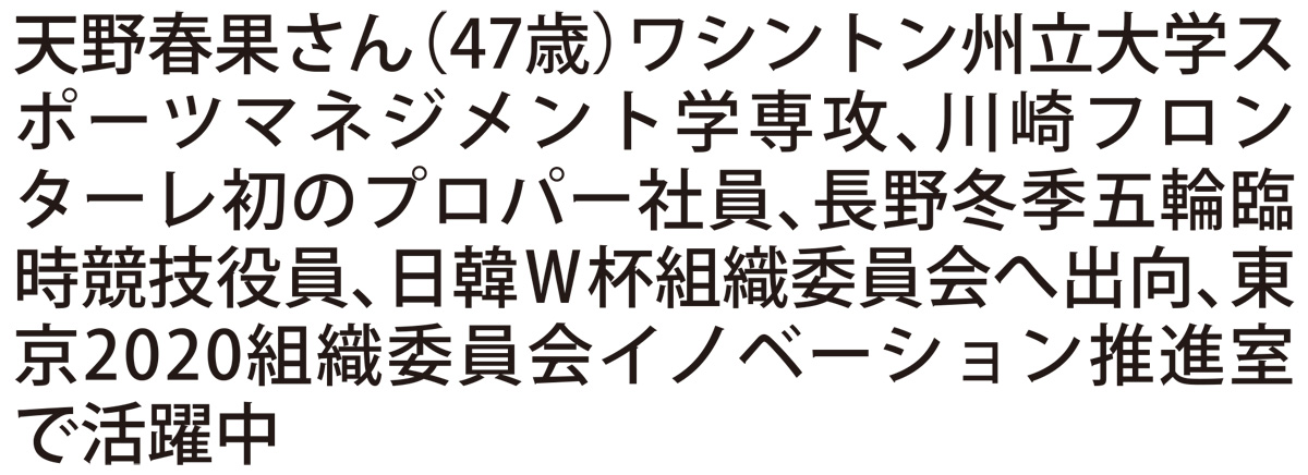 令和の時代が幕を開け、1年2カ月後に迫った東京オリンピック・パラリンピック(以下、東京2020)。その大会を盛り上げる火付け役として活躍しているのが、元川崎フロンターレ(以下、川崎F)プロモーション部部長の天野春果さんだ。川崎での経験、現在の競技大会組織委員会での取り組み、将来について語ってもらった。