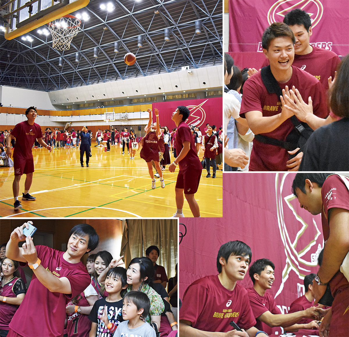 バスケットボール男子Bリーグ・川崎ブレイブサンダースが6月1日、とどろきアリーナ(中原区)のサブアリーナでファン感謝祭を行った。抽選に当選した約400人のファンクラブ会員は、選手と共にチーム対抗フリースローや〇×クイズに挑戦。写真撮影やサイン会を通して交流し、楽しい時間を過ごした。