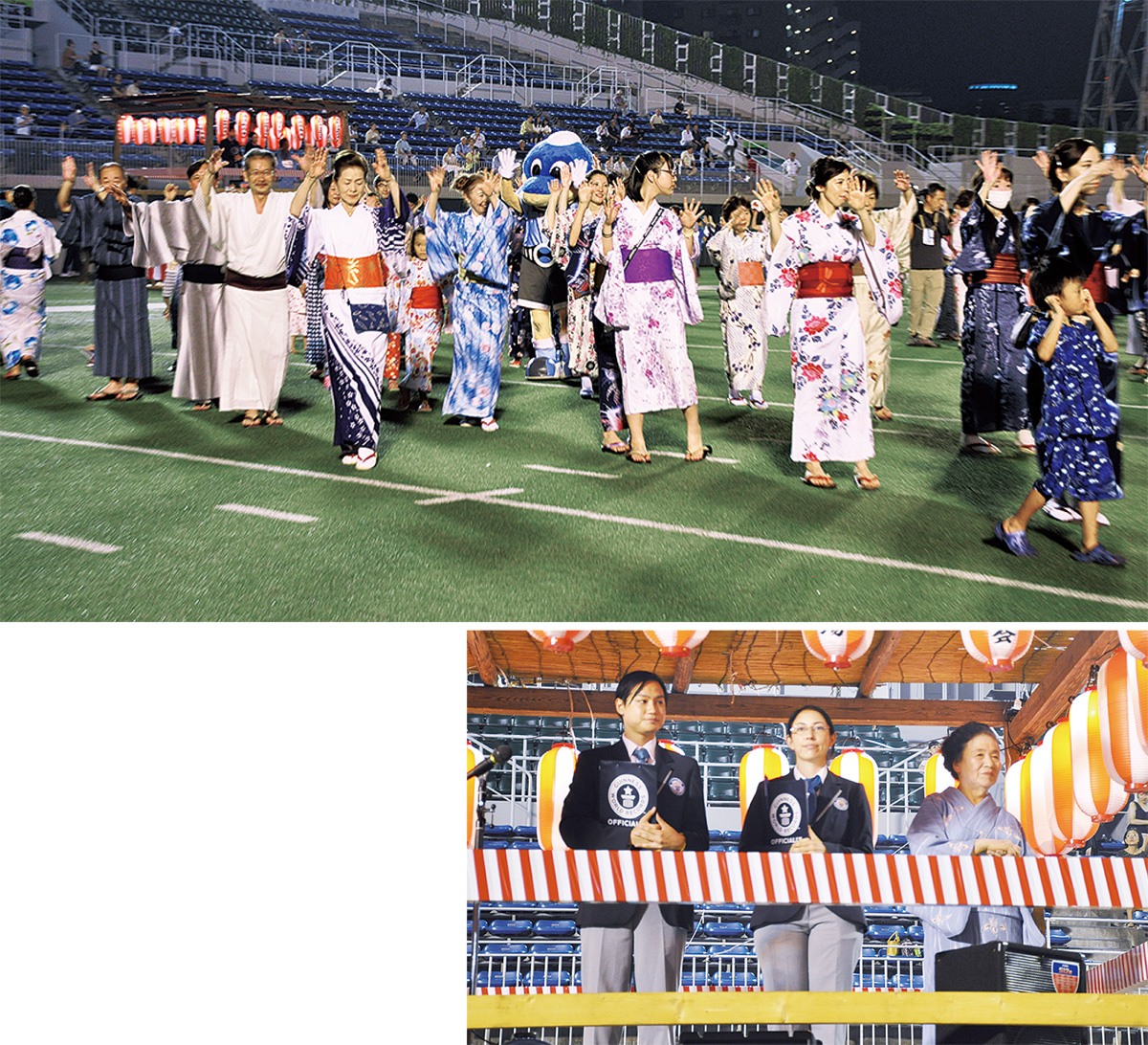 盆踊りを同時に最多人数で踊るギネス世界記録®に挑戦する催しが今月18日、富士通スタジアム川崎(川崎区富士見)で行われた。記録達成こそ叶わなかったが、盆踊りを盛り上げようと、地域関係者が心を一つにして臨んだ。