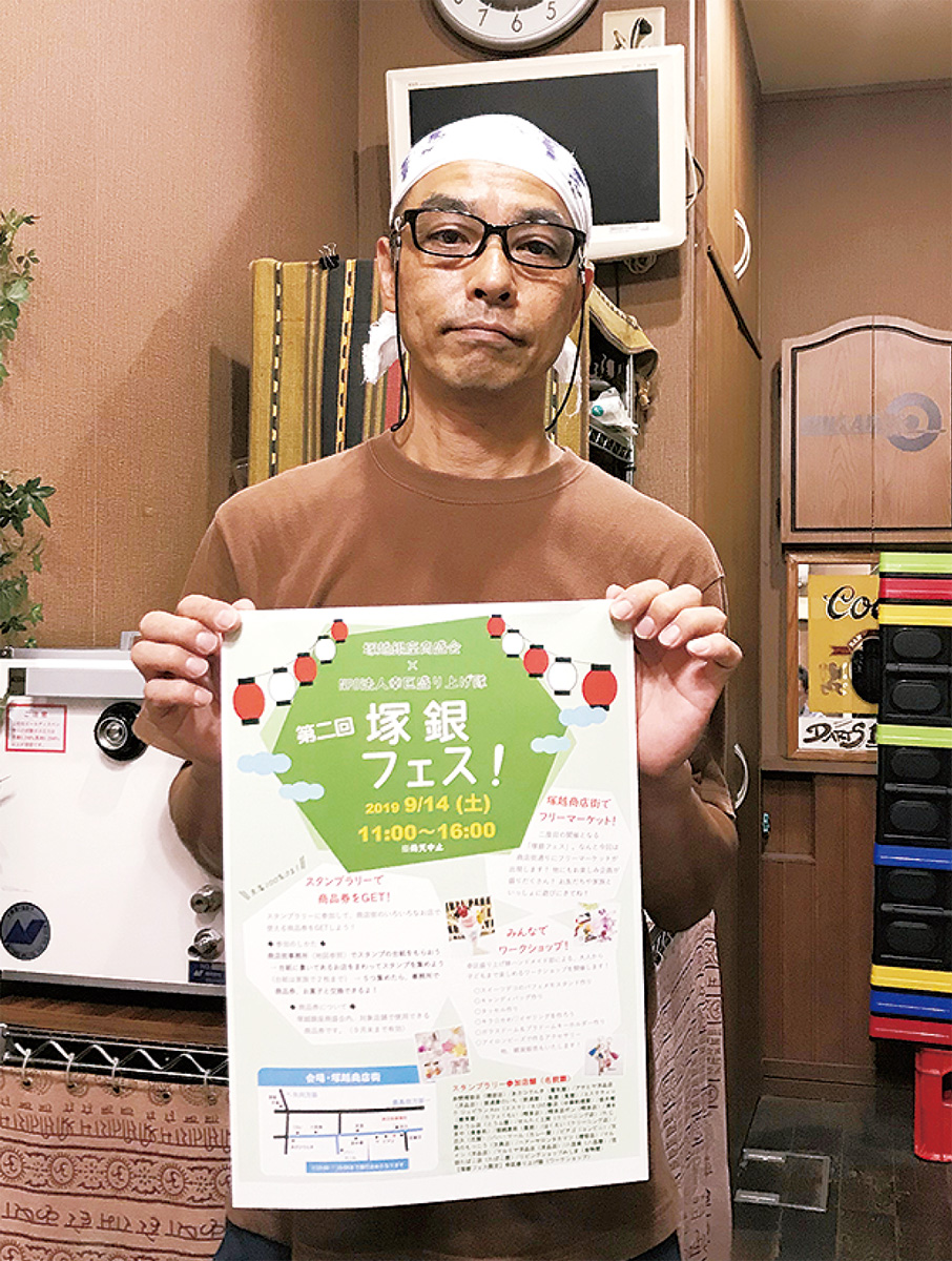 外山宏昭実行委員長によると、地域住民一体となって楽しむが今回のコンセプト。「催しを通じて、塚越名物の夜店のような賑わいを作り出し、多くの人に店を知ってもらえれば」と語る。