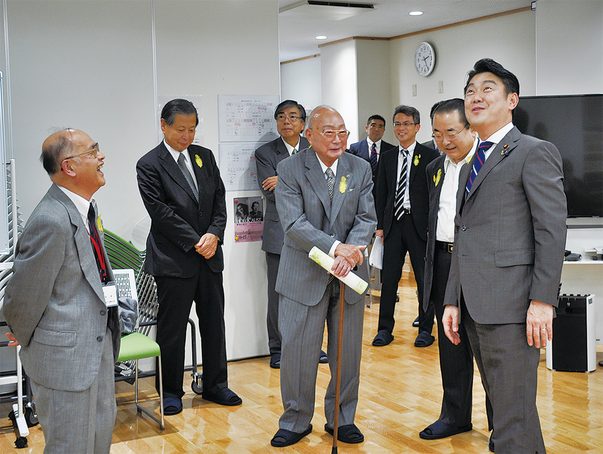 山下法相は、案内役の斎藤文夫理事長や田中和徳副理事長、橋本昇施設長らが地域との融和に心を砕いてきた話に耳を傾けながら、施設内の個室や洗面所などを見て回った。視察後「人間らしく、人権を守る施設。立ち直りの明日への希望の拠点。川崎自立会は全国的にも有名。実際に来てみて本当に温かい心を感じる施設だと感じた」と感心した。
