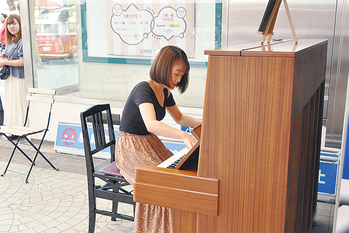 ピアノを弾いていたのは幸区在住で昭和音楽大学1年の田久保萌夏(もか)さん(18)だ。