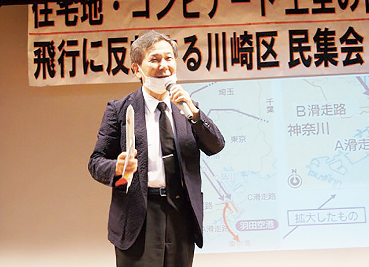 市民団体「羽田増便による低空飛行に反対する『川崎区民の会』」(橘孝代表世話人)は9月23日、教育文化会館(川崎区富士見)で、「住宅地・コンビナート上空の低空飛行に反対する川崎区民集会」を開催した。
