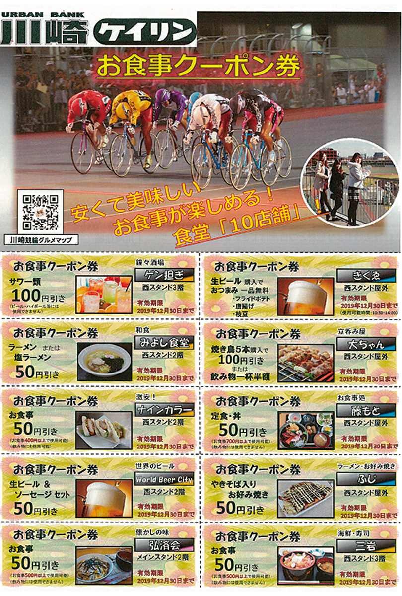 現在、多くの人に競輪場グルメを味わってもらおうと、同競輪場ではクーポンチラシを場内、隣接する「富士通スタジアム川崎」や「カルッツかわさき」で配架している。「ぜひご活用を」と呼びかけている。