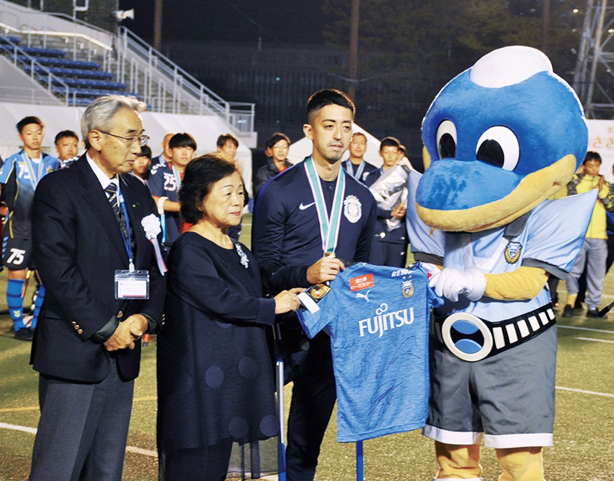 表彰式には武田信平理事長と美彌子さんが出席。エンヒッキ松茂良 ジアス選手(FCアウボラーダ)に同賞を贈った。美禰子さんは、「俊行の思いをこのような形にしていただき光栄。昔のフロンターレは応援人数が100人に満たないこともあり、今日集まった観客よりも少なかった。あと何年か経ったとき、今のフロンターレと同じように多くの人に愛されるようになってもらえれば」と述べた。