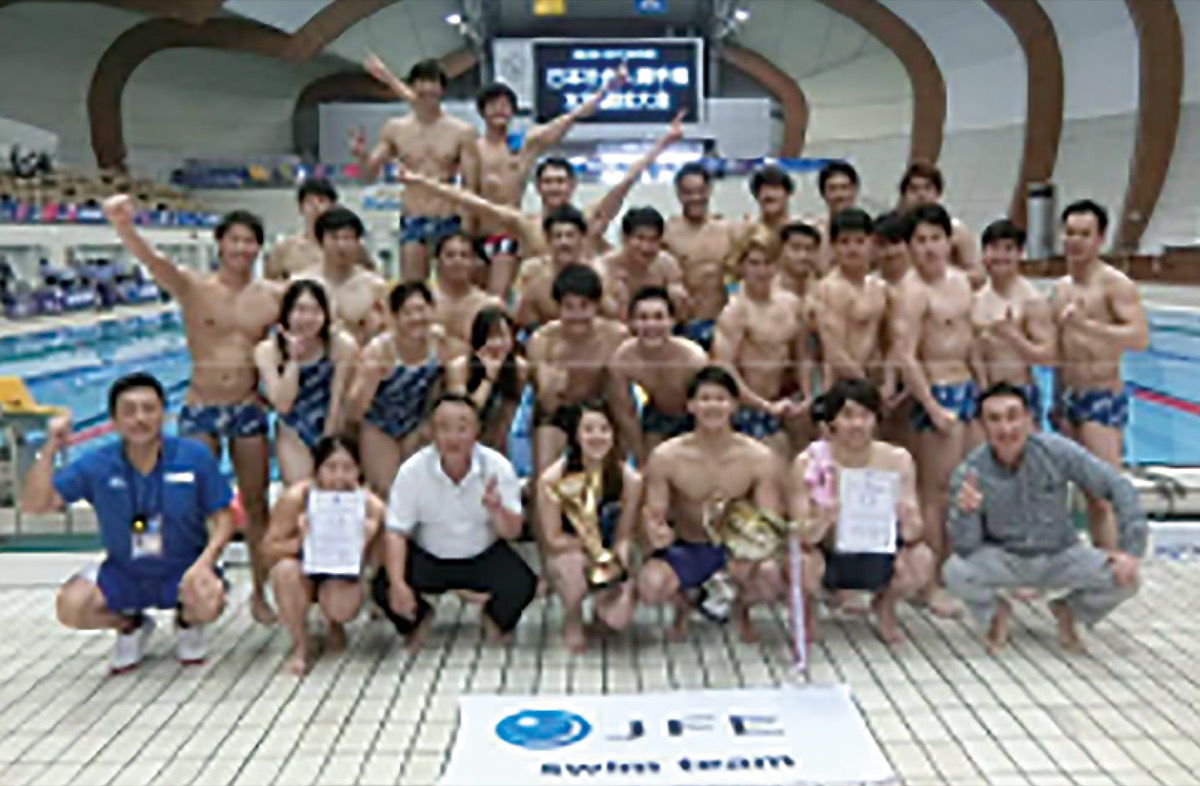 来年の東京オリンピックの強化選手も出場し、昨年以上の厳しい条件下での大会となった。同部の優勝は日本実業団水泳競技大会時代から数えると男女とも通算17回目。また、男女のW優勝は2000年の旧NKK時代以来10回目となる。小倉智也監督は「応援していただいている方々に感謝の気持ちで一杯。今後も社会人スイマーとして仕事と水泳の両立を目指す」と語る。
