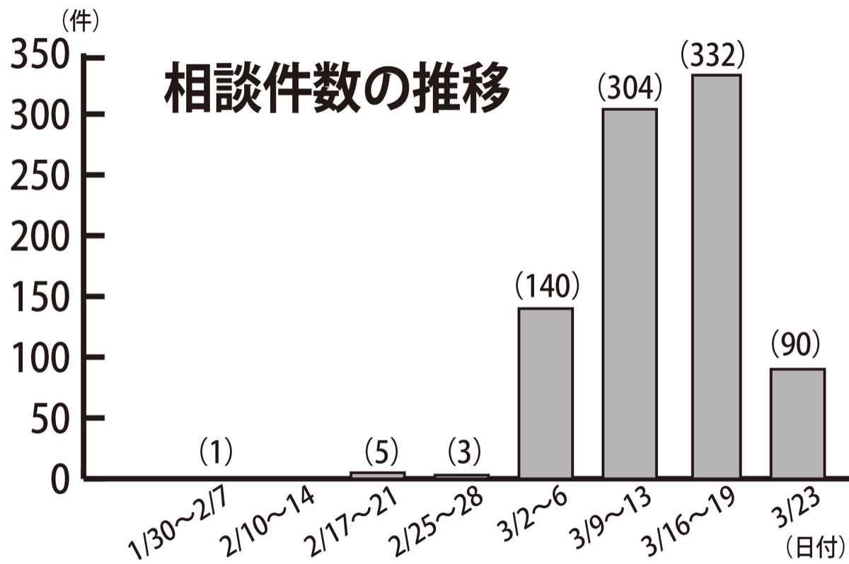 新型コロナの感染拡大を受け、川崎市は1月30日に経営相談窓口を設置。2月末までの相談件数は9件だったが、市が新たな融資制度を表明した3月2日以降、相談が急増。イベント関連企業や飲食店などから資金繰りの悪化に関する相談などが目立つという。