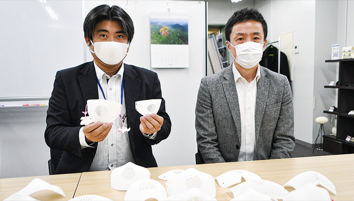 新型コロナウイルスの感染拡大によるマスク不足を受け「困っている方の力になれないか」と矢花社長が同社の設備を生かしたマスクの開発を発案。3月初旬に設計に取りかかり、試験的に装着した社員たちの意見をもとに改良を重ねた。3Dシステム営業部部長の吉澤岳明さんは「隙間を無くし、顔に自然にフィットする形を作るのに試行錯誤しました」と語る。